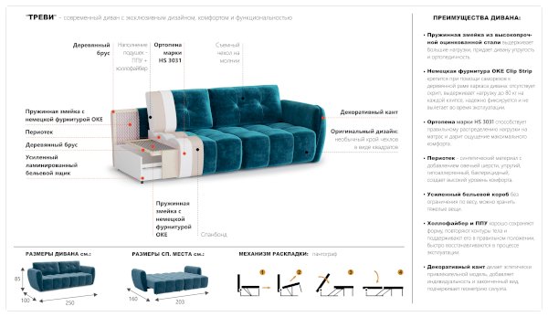 Угловой диван Треви-3 (Империал) продается в интернет-магазине mebelin-dolgoprudniy.ru по цене 108 210 руб. Есть доставка по Долгопрудному и Московской области. Возможность подъема на этаж и сборки уточняйте у менеджера по телефону 8(800)505-27-11.
