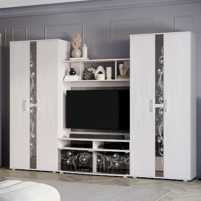 Гостиная "Флоренция" отличается утонченным дизайном и практичностью. Оттенок "белый ясень" в сочетании с растительным принтом придают помещению свежесть и легкость.